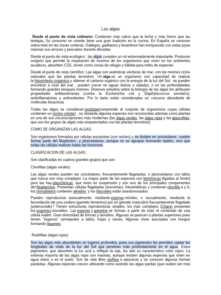 para absorberla. La mayoría de las algas presentan una pared celular conformada principalmente
