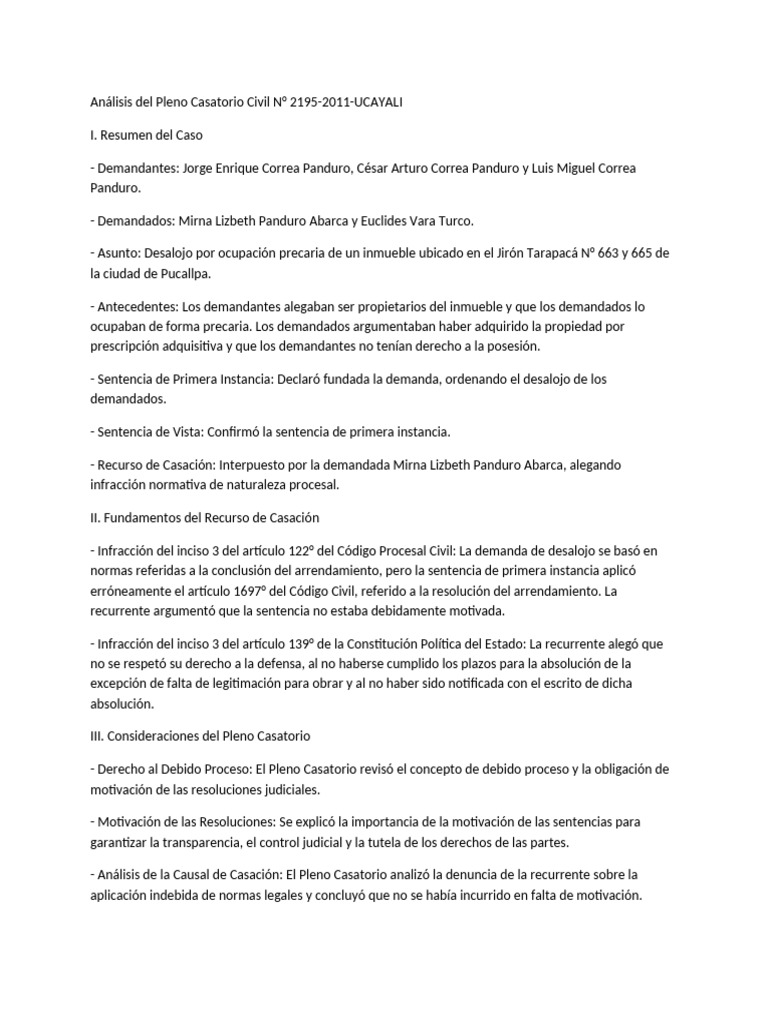 Análisis del Pleno Casatorio Civil N° 2195-2011-UCAYALI