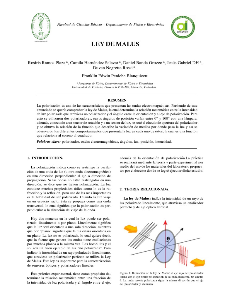 cribe la intensidad I de la luz polarizada, con una En resumen, la Ley de Malus nos recuerda que la luz