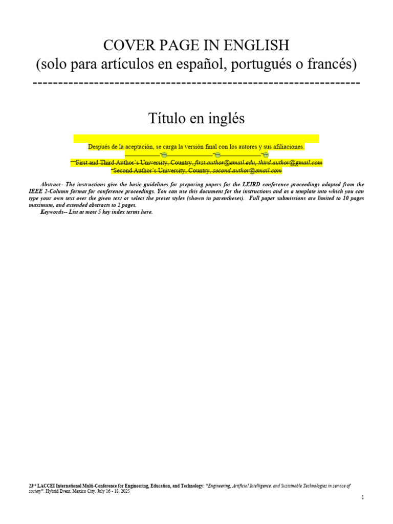 Abstract– The instructions give the basic guidelines for preparing papers for the LEIRD conference proceedings adapted from the