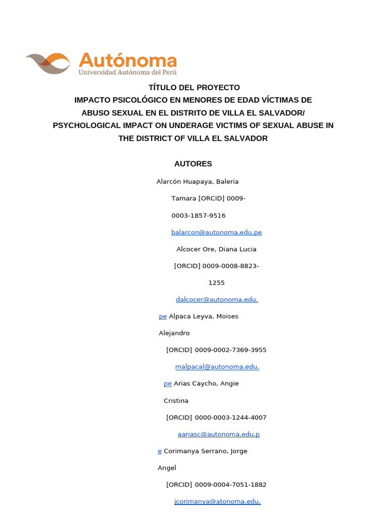 Palabras claves: Impacto psicológico, abuso sexual, menores de edad.