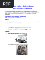 los siguientes tipos de sistemas de información: TPS, PS, MIS, DSS,