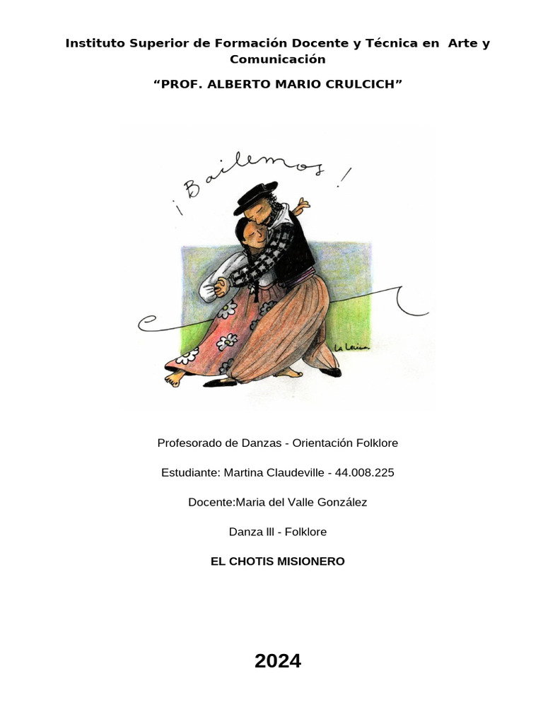 esta danza se popularice. El “Chotis Misionero” es el resultado de un proceso de creación