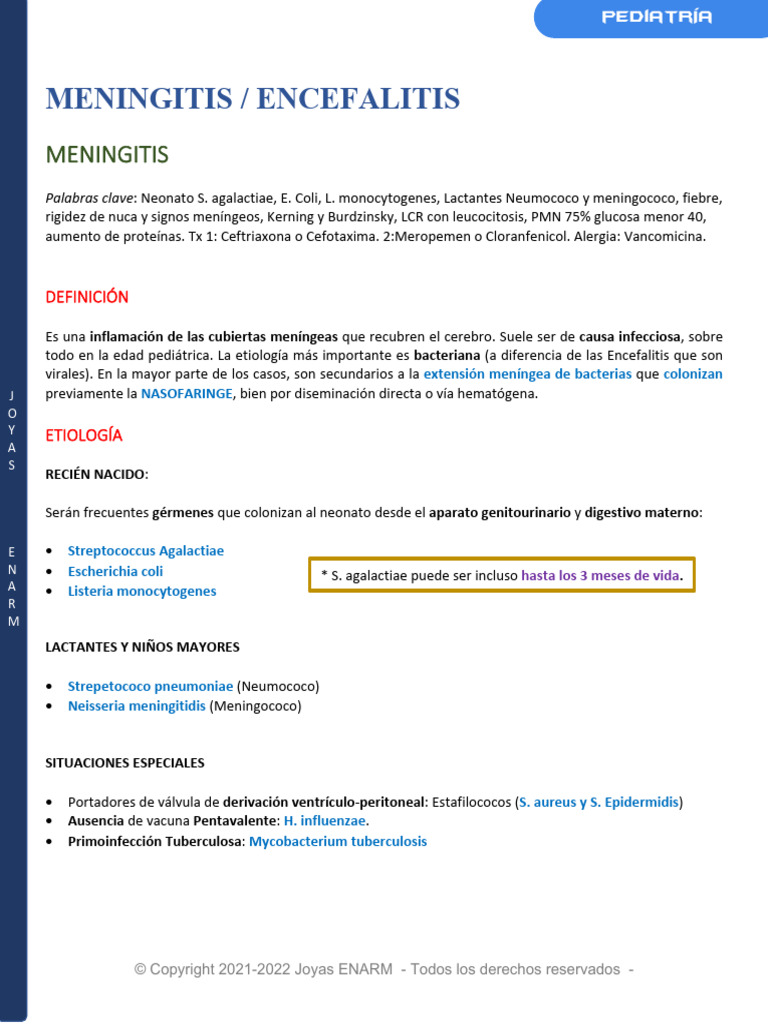 todo en la edad pediátrica. La etiología más importante es bacteriana (a diferencia de las Encefalitis que son