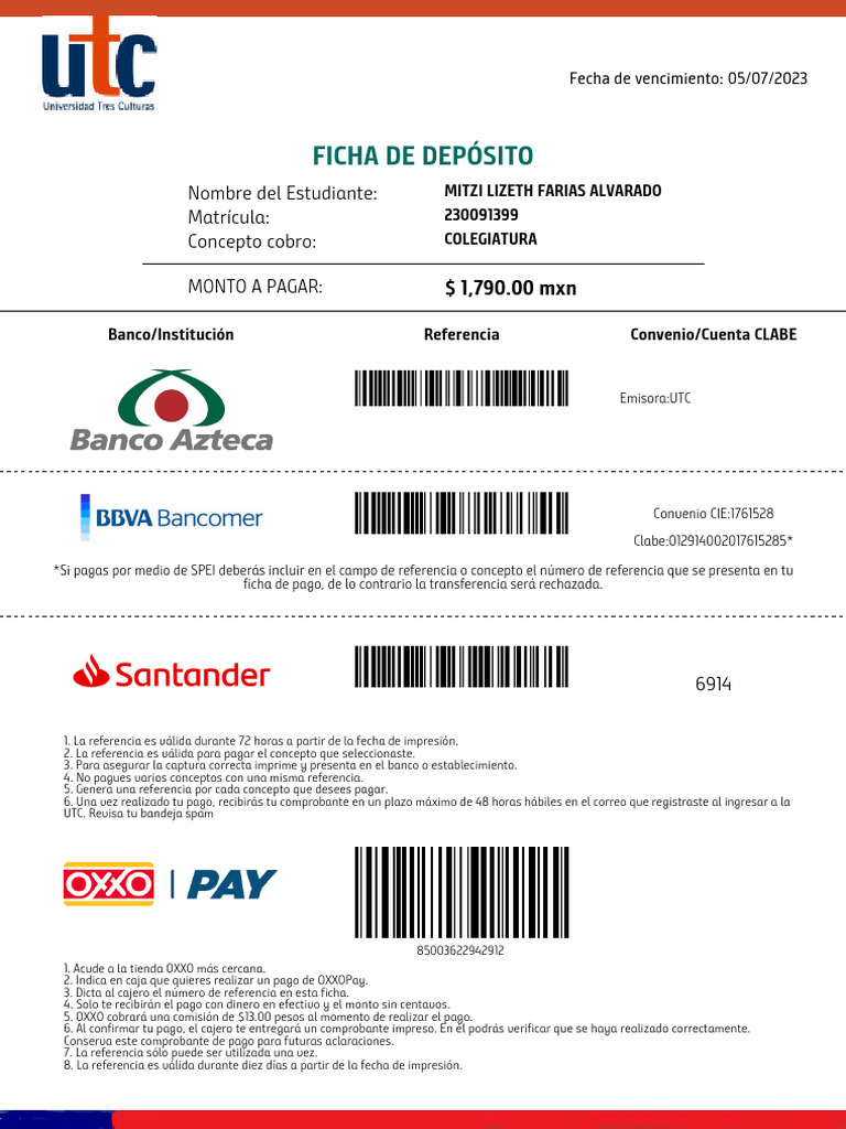 *Si pagas por medio de SPEI deberás incluir en el campo de referencia o concepto el número de referencia que se presenta en tu