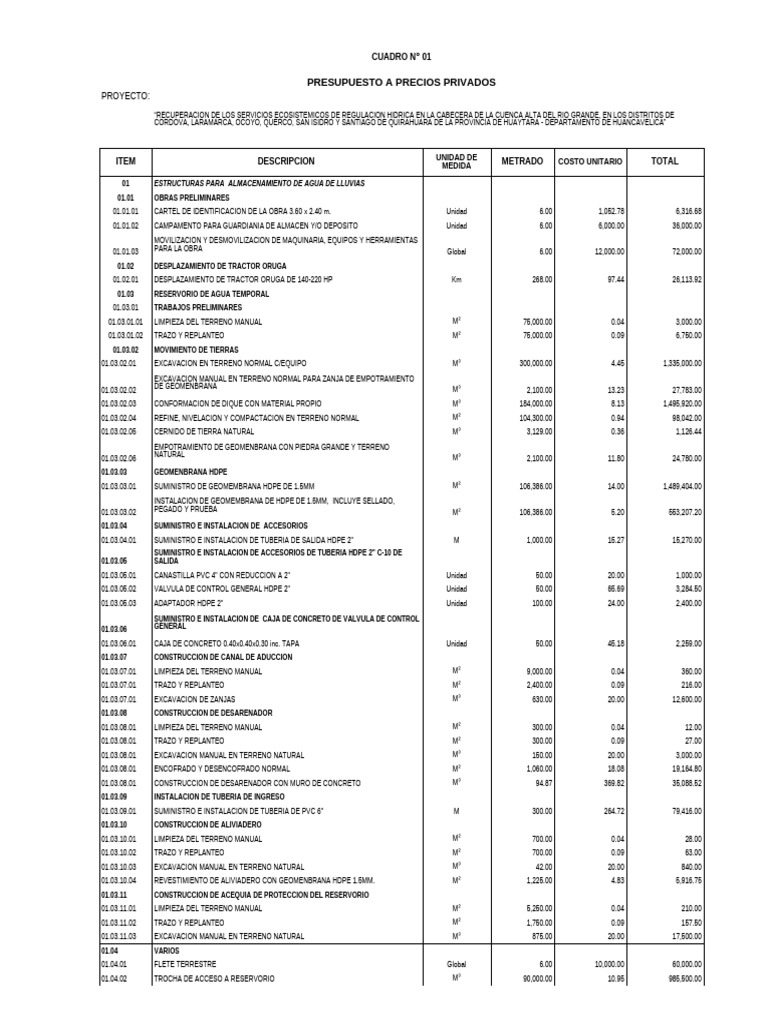 01.04.02 TROCHA DE ACCESO A RESERVORIO M³ 90,000.00 10.95 985,500.00