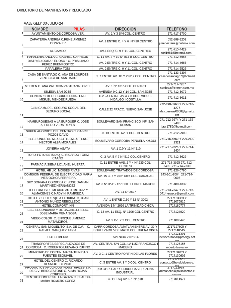 DIRECTORIO DE MANIFIESTOS Y RECICLADO