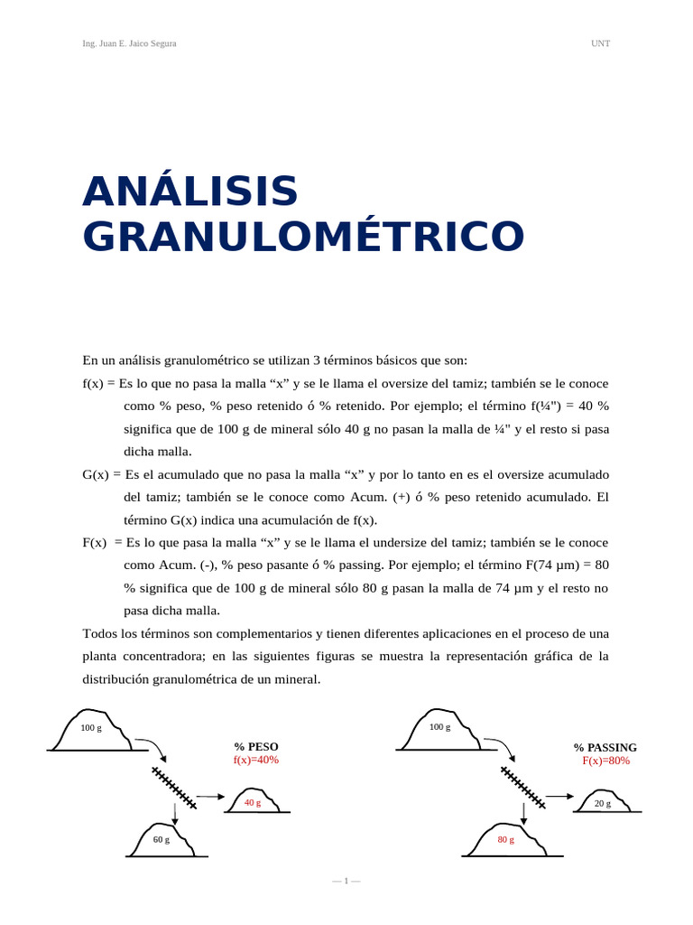 En un análisis granulométrico se utilizan 3 términos básicos que son: