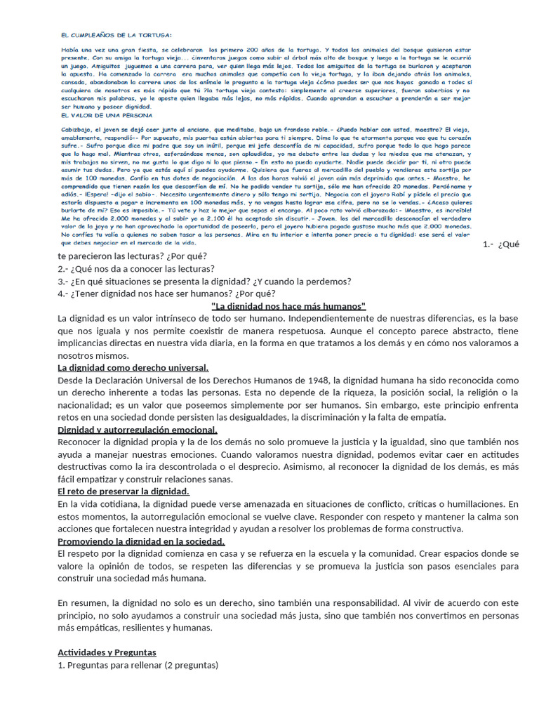 7. Según la lectura, ¿cómo contribuye esta acción al respeto por la dignidad humana?