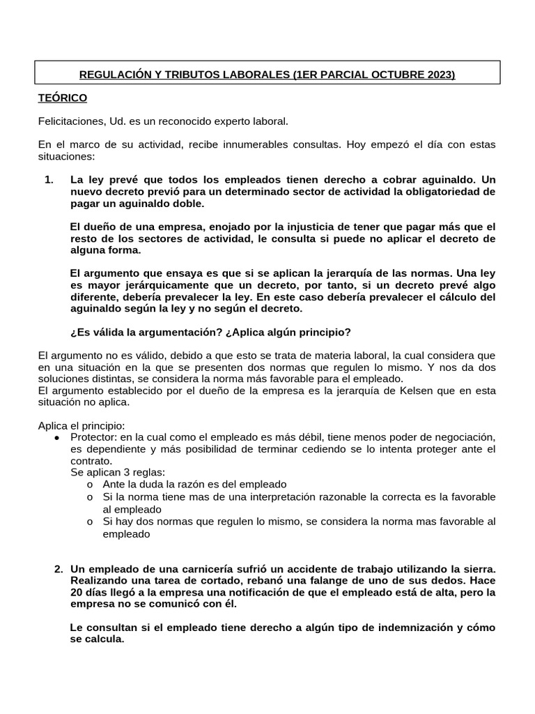 REGULACIÓN Y TRIBUTOS LABORALES (1ER PARCIAL OCTUBRE 2023)