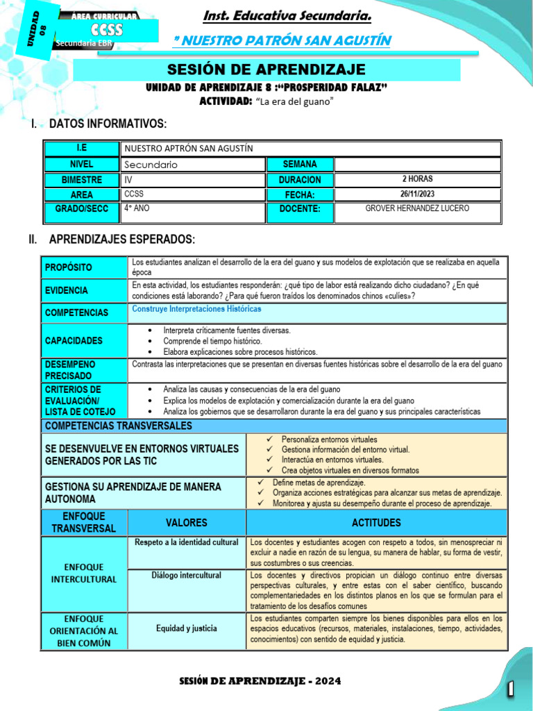 DESEMPEÑO Contrasta las interpretaciones que se presentan en diversas fuentes históricas sobre el desarrollo de la era del guano