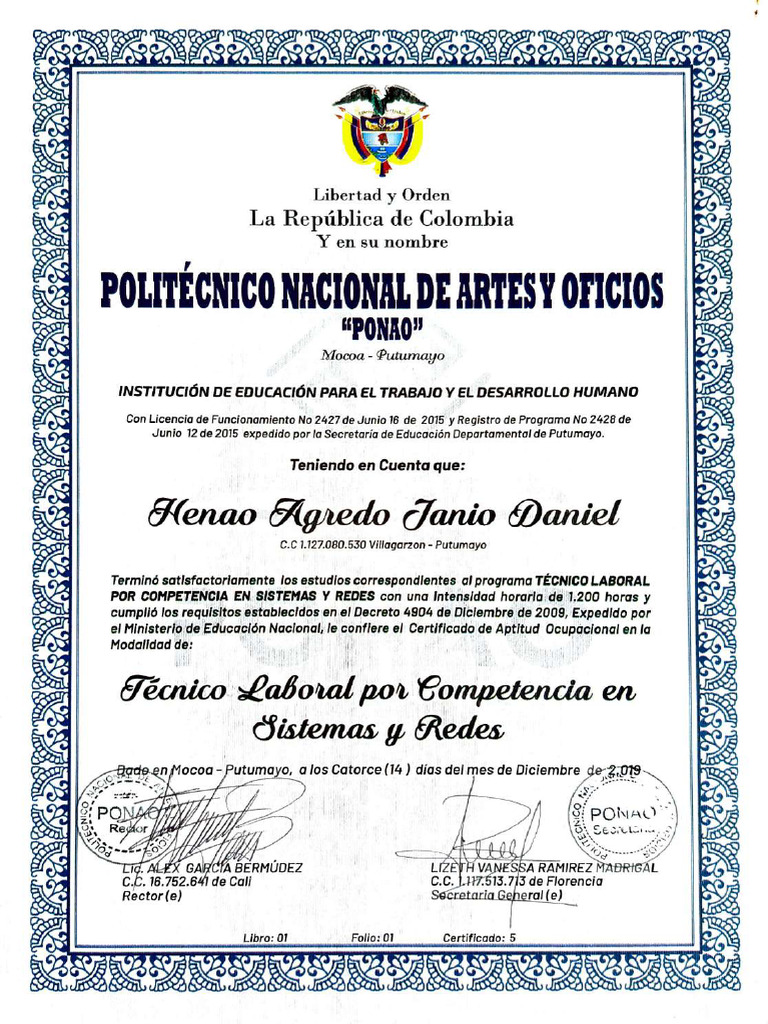 TECNIC0 LABORAL POR COMPETENCIA EN SISTEMAS YREDES de esta Institución