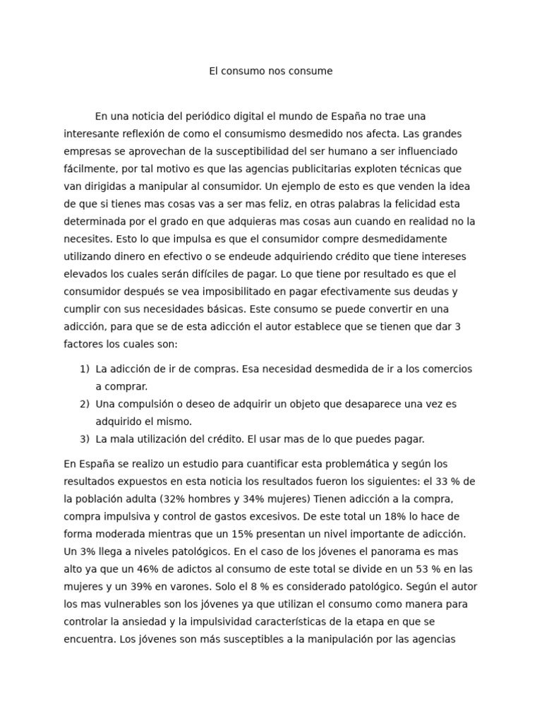necesites. Esto lo que impulsa es que el consumidor compre desmedidamente
