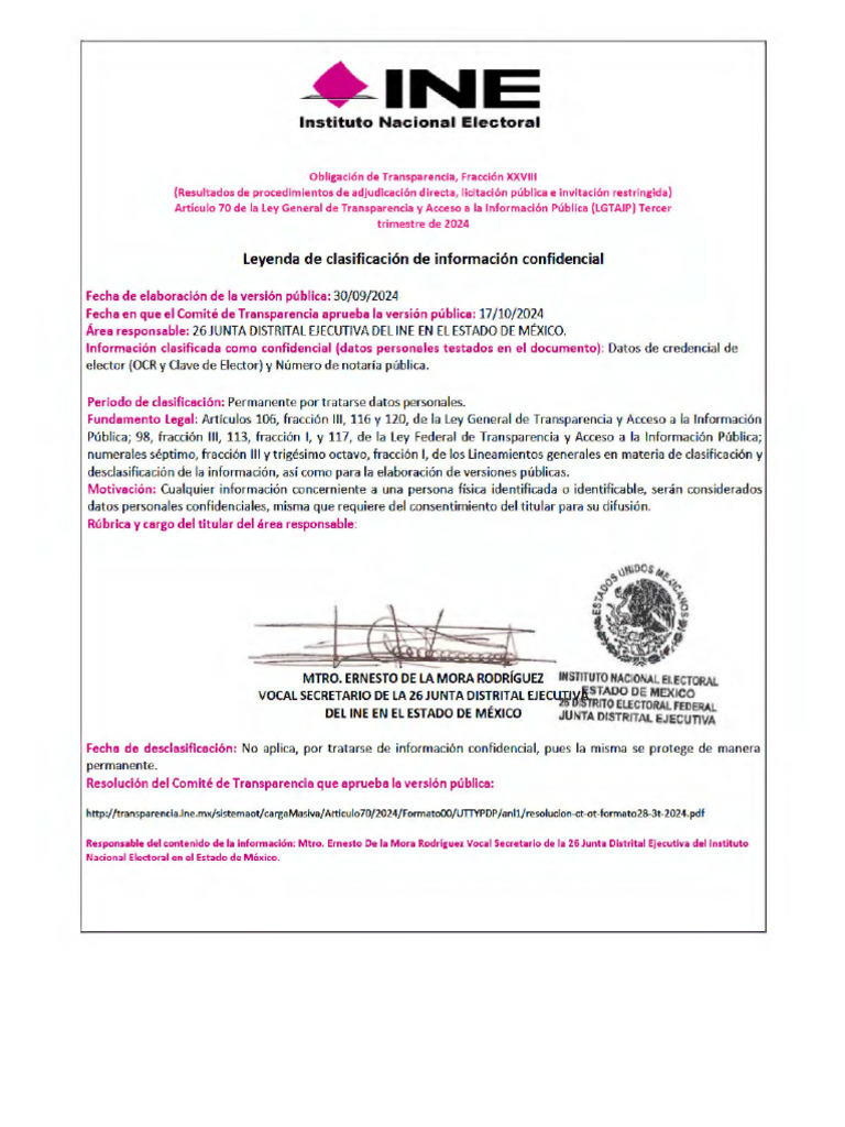 Área responsable: 26 JUNTA DISTRITAL EJECUTIVA DEL INE EN EL ESTADO DE M ÉXICO.