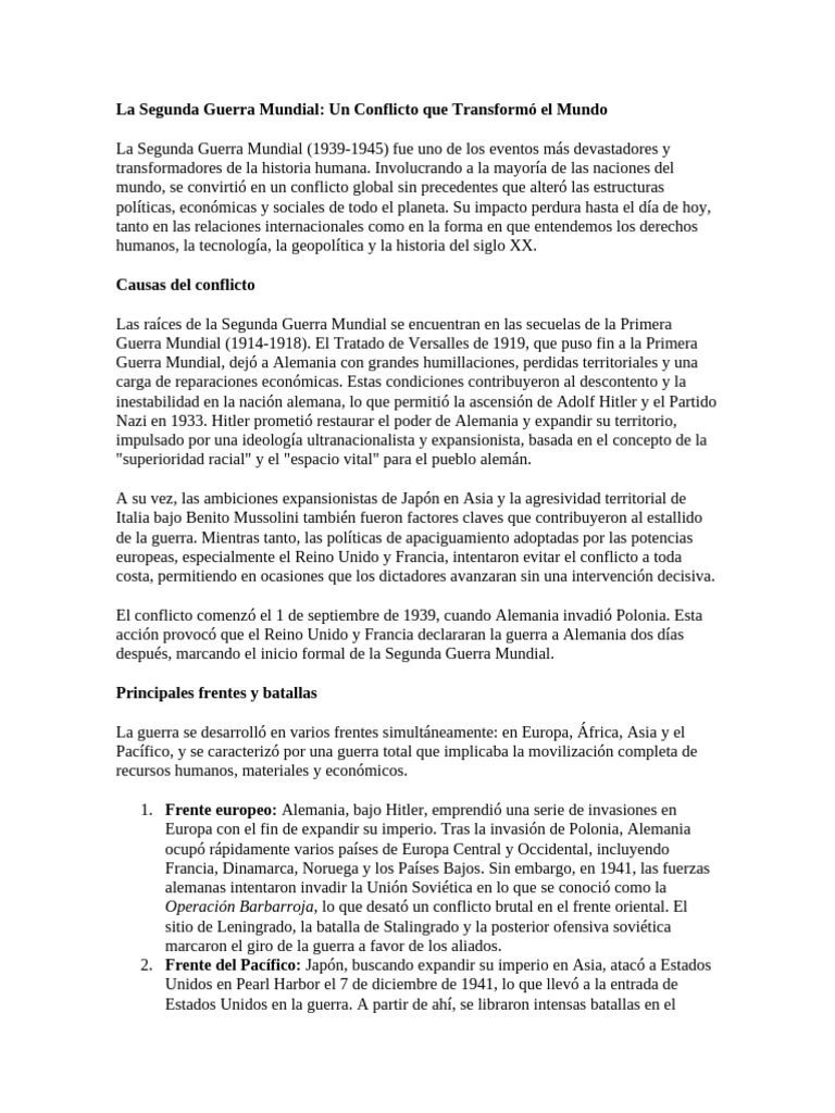 La Segunda Guerra Mundial: Un Conflicto que Transformó el Mundo