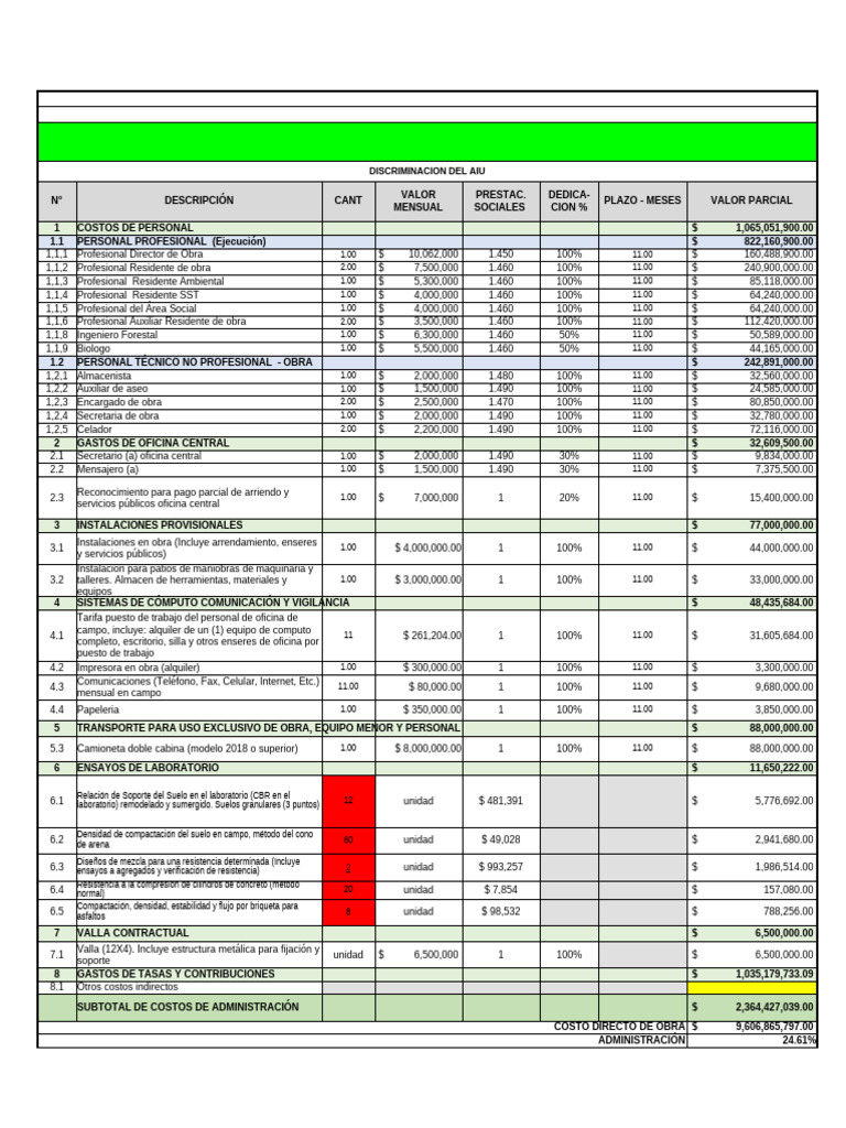 2. El personal Socioambiental y de Seguridad del Trabajo, está cargado dentro del personal administrativo de la obra.
