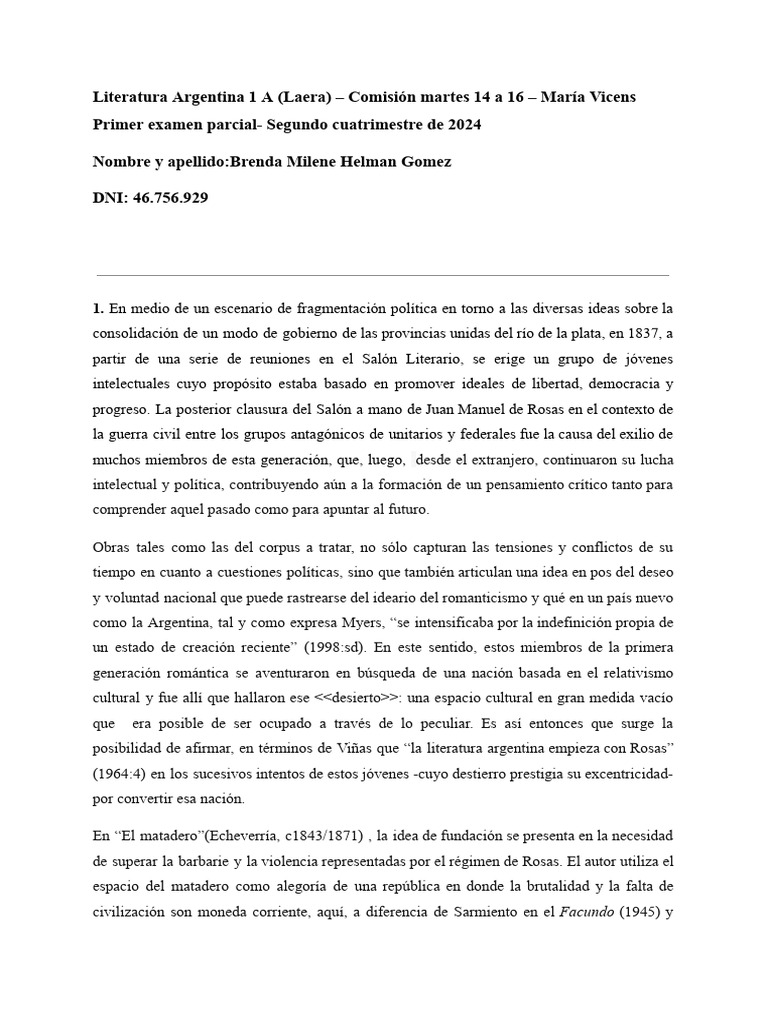 Literatura Argentina 1 A (Laera) – Comisión martes 14 a 16 – María Vicens