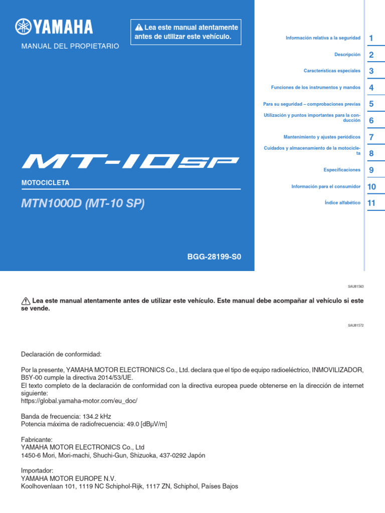 Manual del Propietario Yamaha MTN1000D