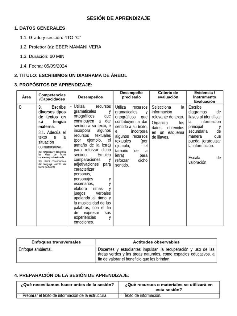 4. PREPARACIÓN DE LA SESIÓN DE APRENDIZAJE: