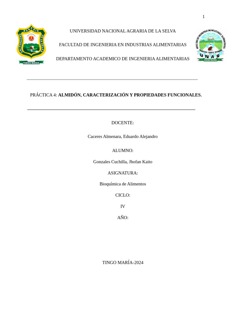 PRÁCTICA 4: ALMIDÓN, CARACTERIZACIÓN Y PROPIEDADES FUNCIONALES.