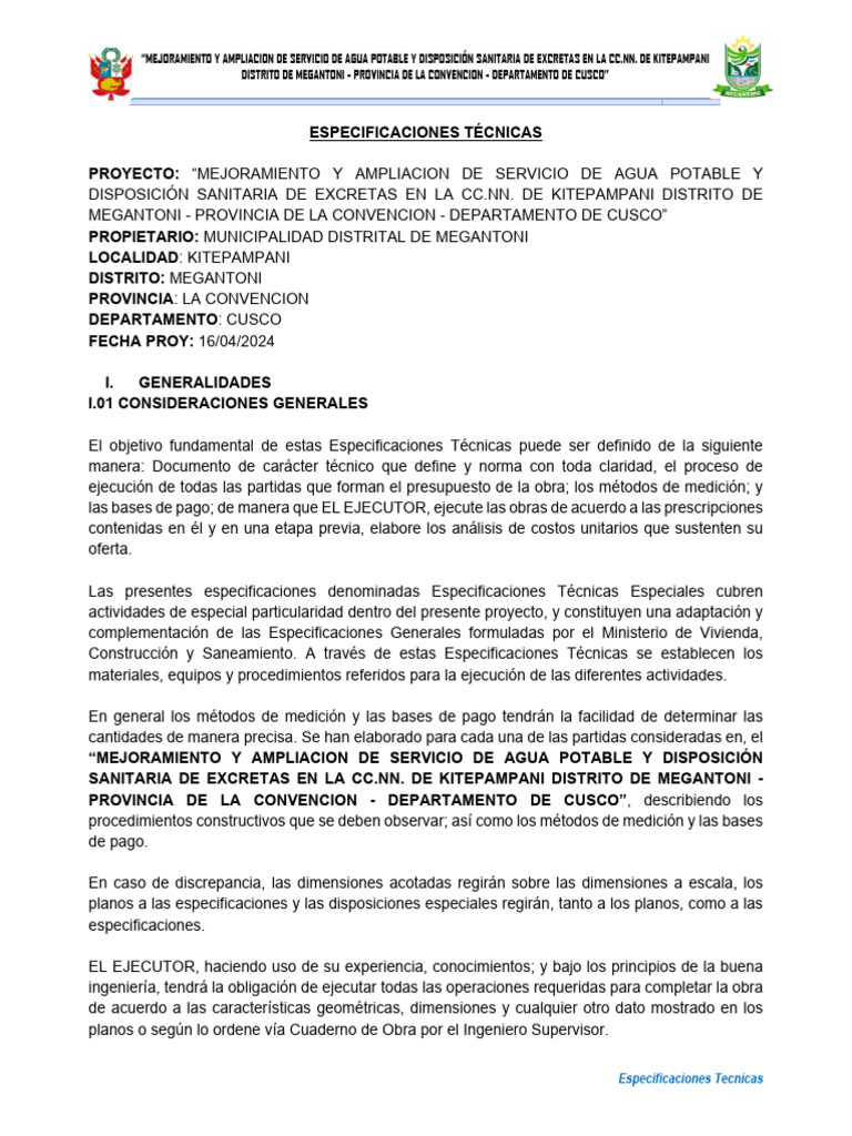 ESPECIFICACIONES TECNICAS - Kitepampani