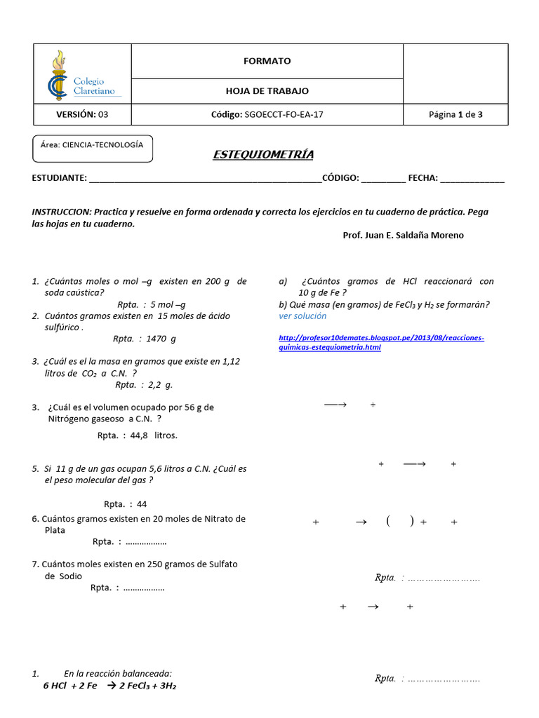 Rpta. : 1,43 g consumido? Parte 1 parte 2