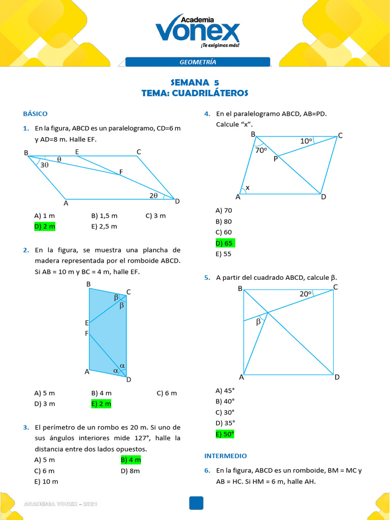1. En la figura, ABCD es un paralelogramo, CD=6 m