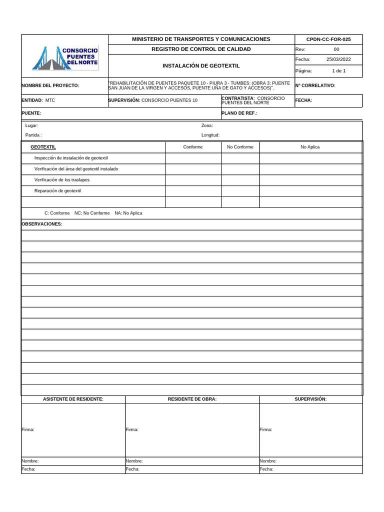 ENTIDAD: MTC SUPERVISIÓN: CONSORCIO PUENTES 10 FECHA: