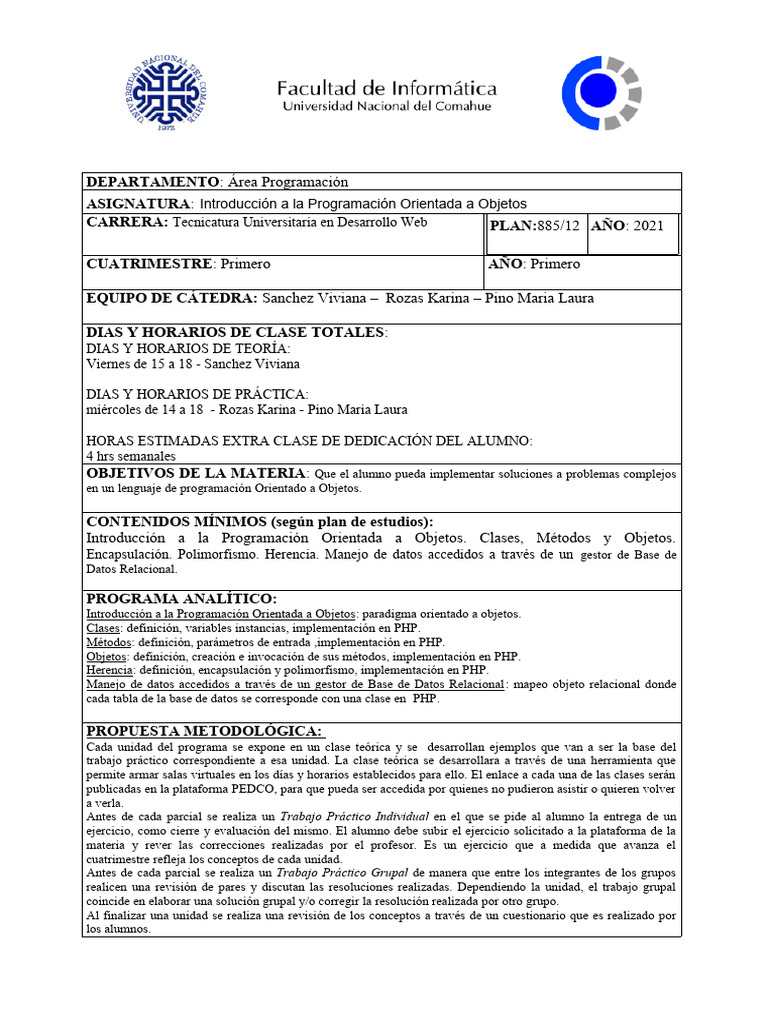 Cada unidad del programa se expone en un clase teórica y se desarrollan ejemplos que van a ser la base del