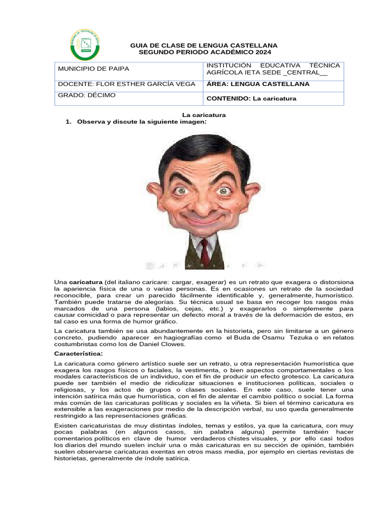 DOCENTE: FLOR ESTHER GARCÍA VEGA ÁREA: LENGUA CASTELLANA