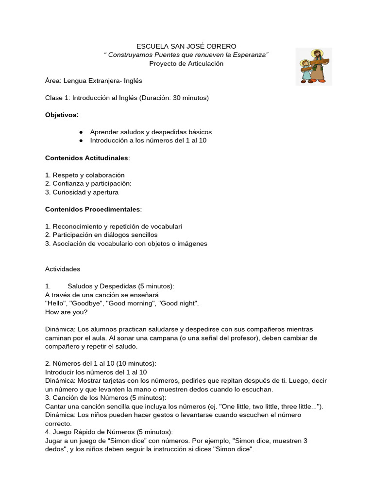 Clase 1: Introducción al Inglés (Duración: 30 minutos)