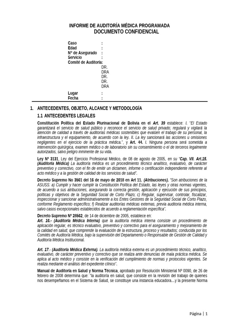 INFORME DE AUDITORÍA MÉDICA PROGRAMADA