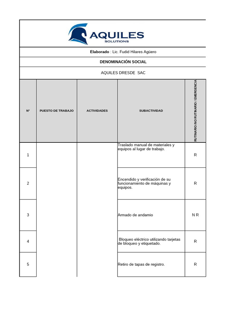Personas Expuestas, Procedimientos Existentes, Capacitaciones, Exposición Riesgo)