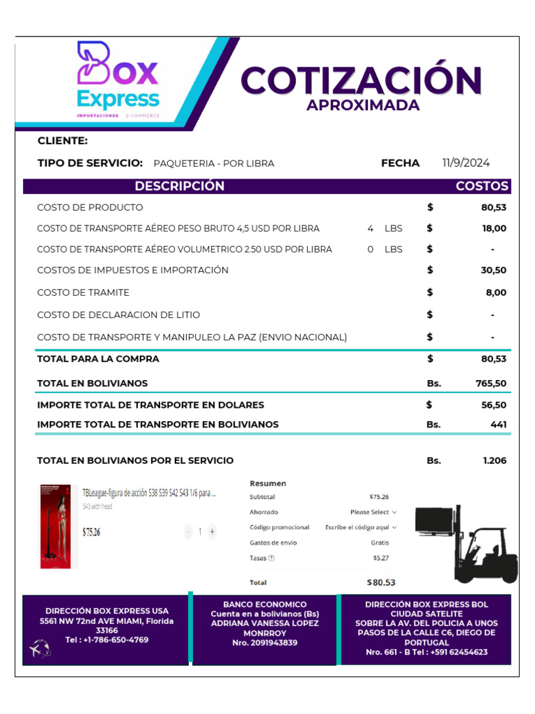 1. Box Express ofrece a sus clientes un tiempo de entrega estimado de 20 a 25 días hábiles a partir de que se porporcione la