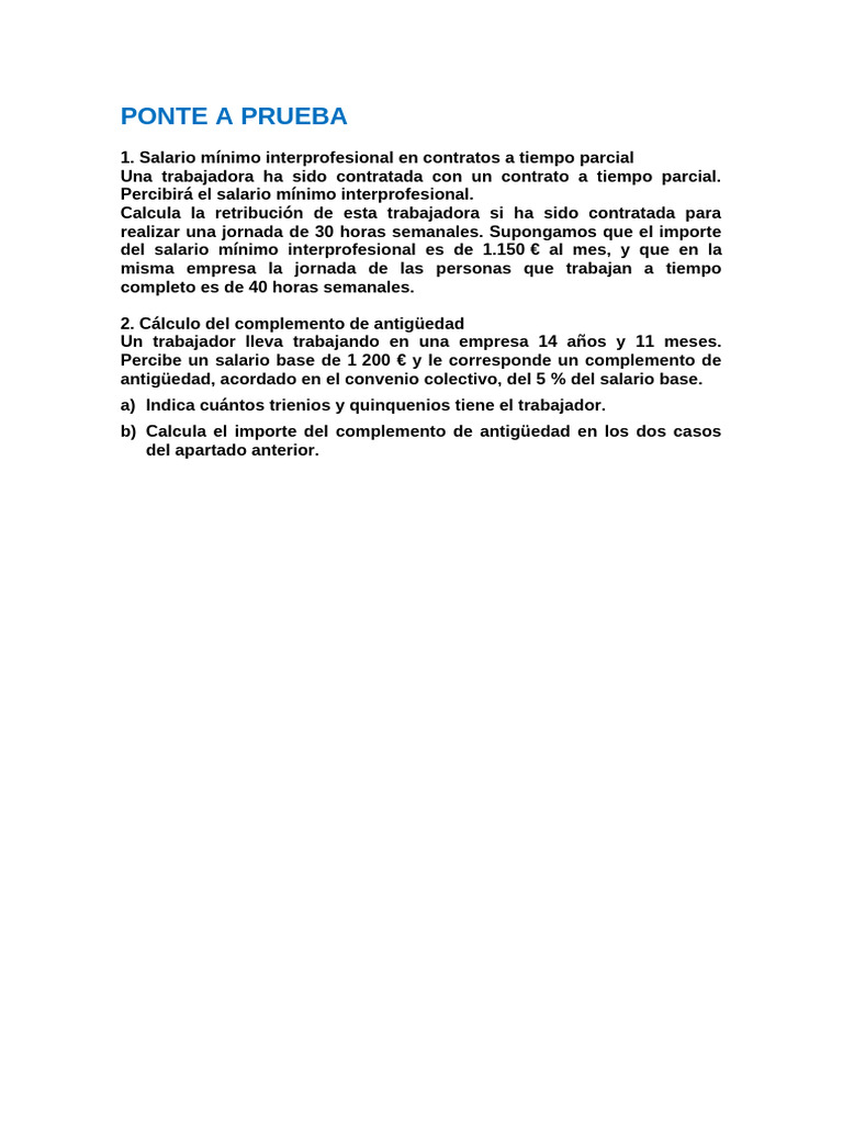 b) Calcula el importe del complemento de antigüedad en los dos casos