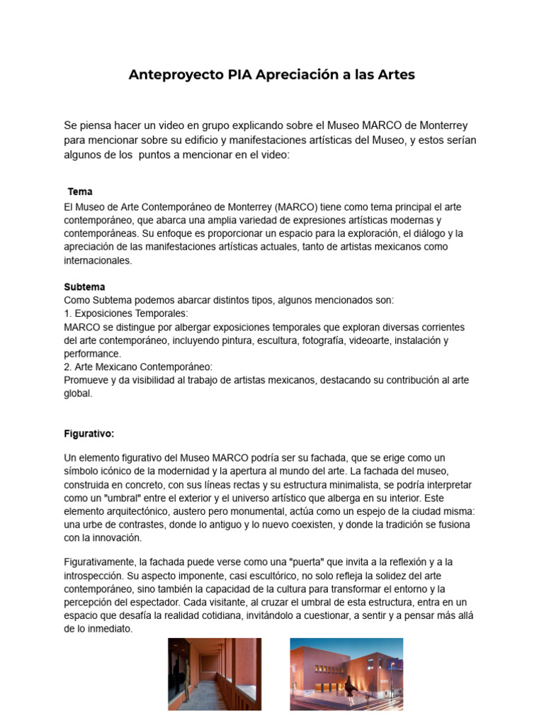 Se piensa hacer un video en grupo explicando sobre el Museo MARCO de Monterrey
