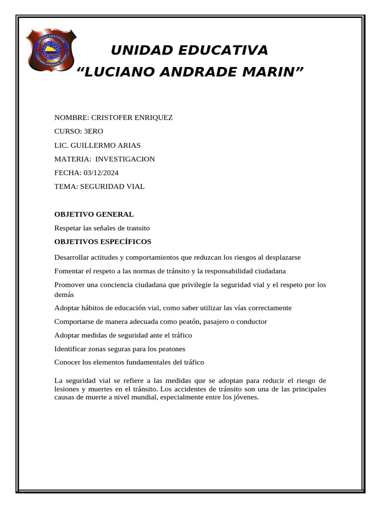 TEMA: SEGURIDAD VIAL