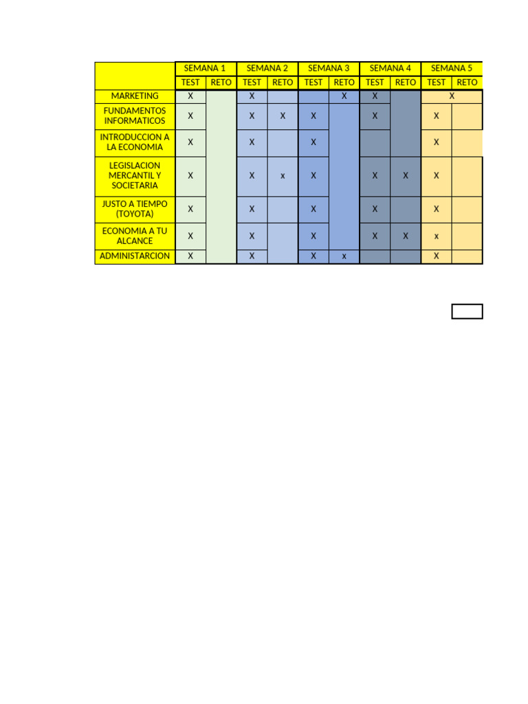 SEMANA 1 SEMANA 2 SEMANA 3 SEMANA 4 SEMANA 5