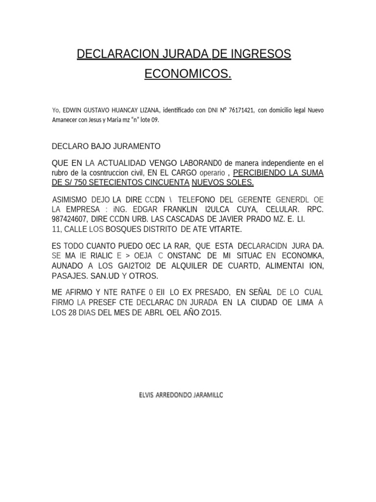 ES TODO CUANTO PUEDO OEC LA RAR, QUE ESTA DECLARACIDN JURA DA.