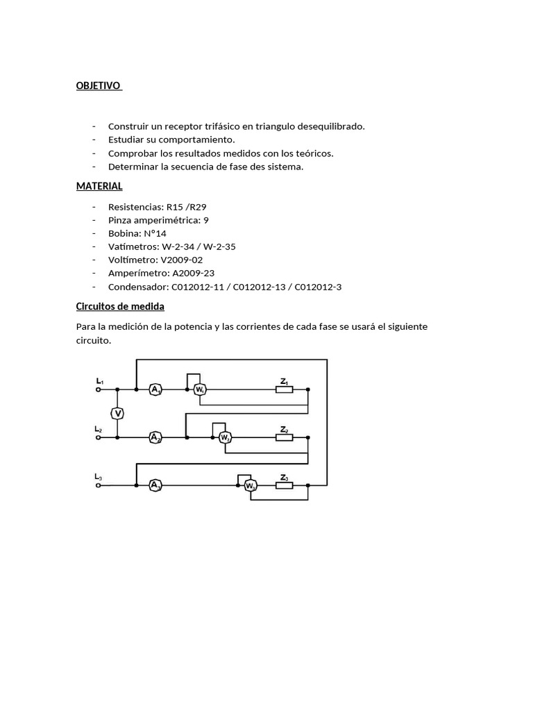 las corrientes desfase y los vatímetros las potencias en cada fase. Se obtendrán los