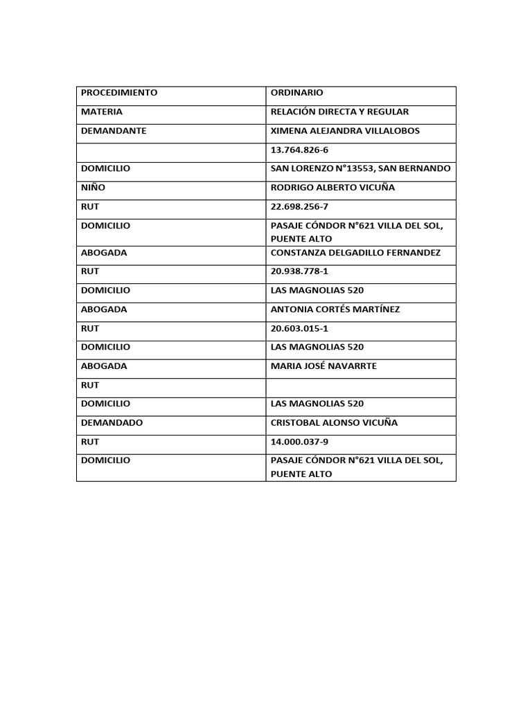 SOLICITO A US. Tener por interpuesta demanda de relación directa y regular en