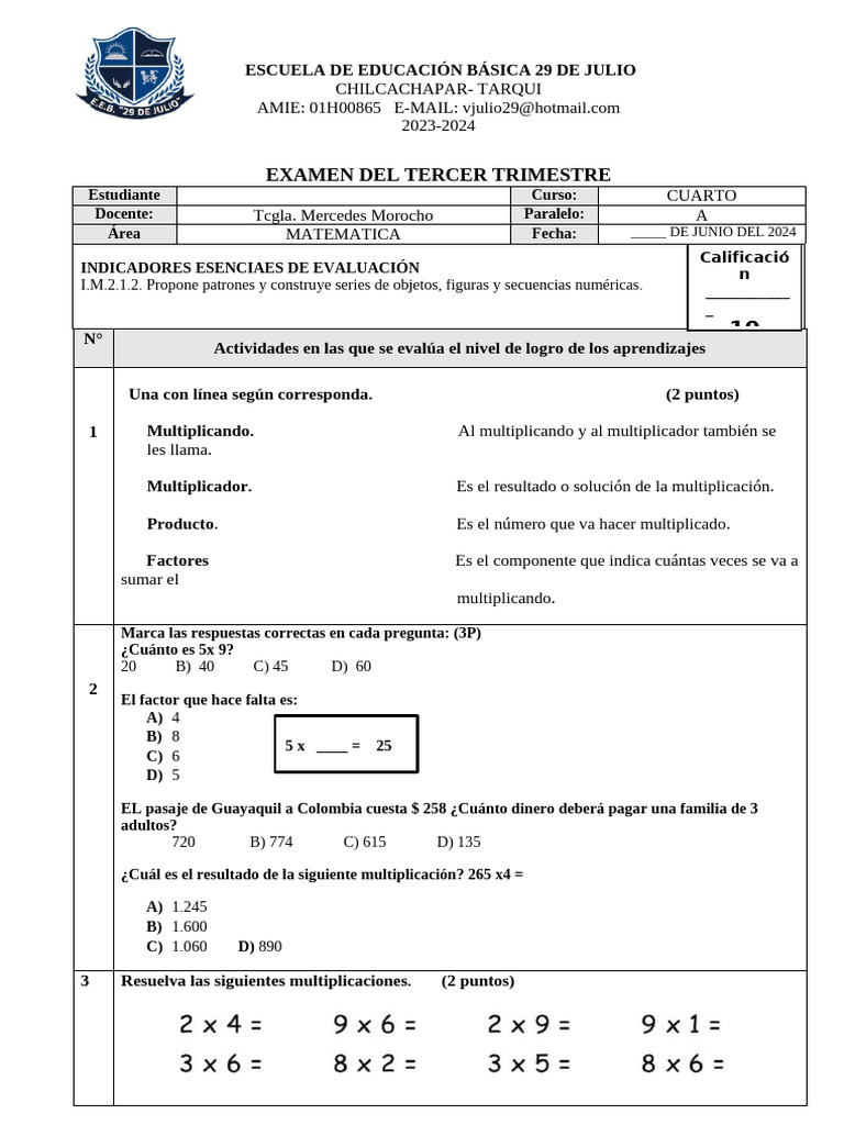 EXAMEN DEL TERCER TRIMESTRE