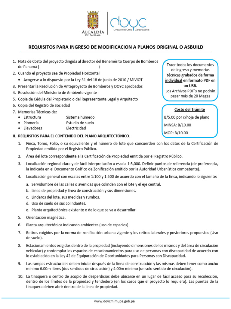 REQUISITOS PARA INGRESO DE MODIFICACION A PLANOS ORIGINAL O ASBUILD