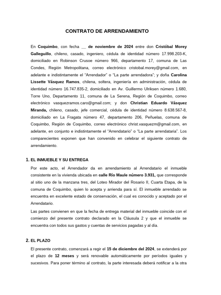 En Coquimbo, con fecha __ de noviembre de 2024 entre don Cristóbal Morey
