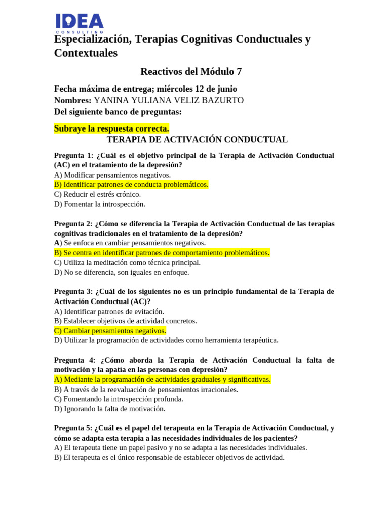 Pregunta 1: ¿Cuál es el objetivo principal de la Terapia de Activación Conductual