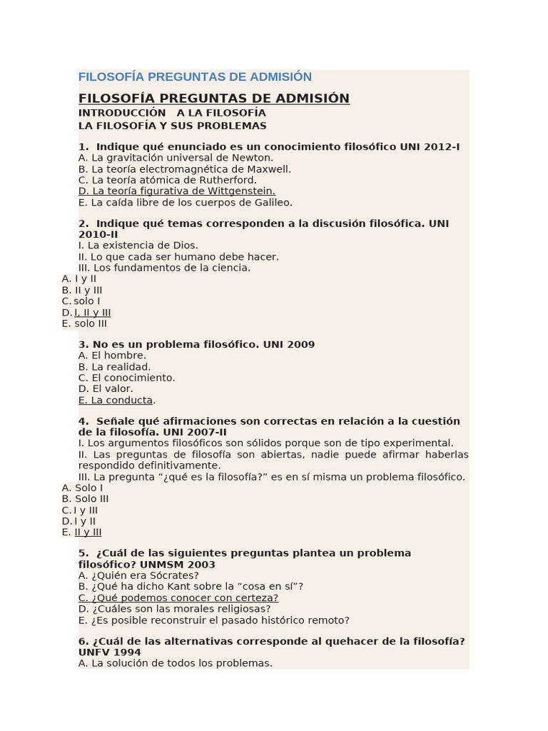 FILOSOFÍA PREGUNTAS DE ADMISIÓN