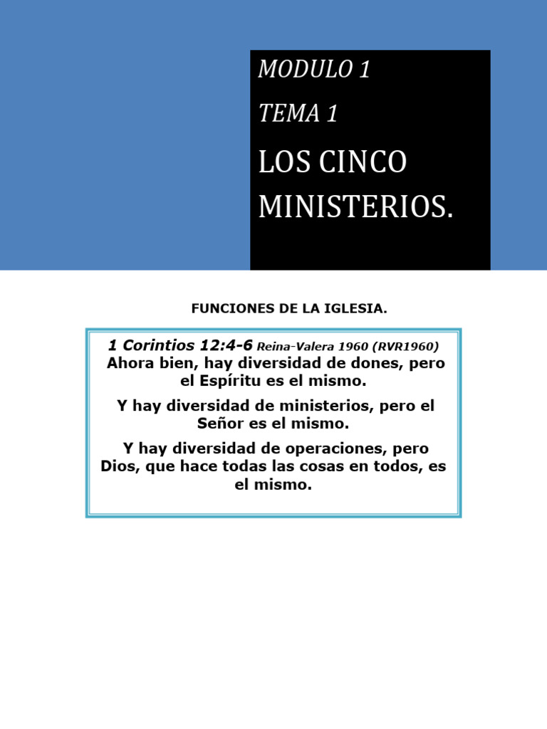 fueron desarrollados los cinco ministerios y luego el impartió a
