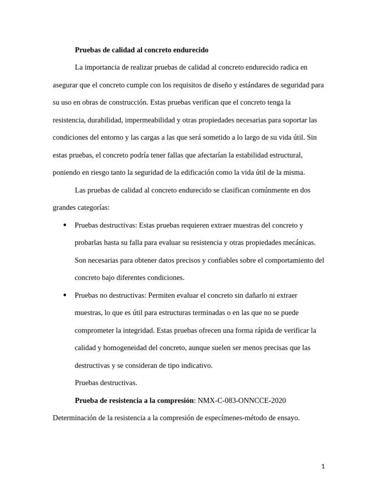 su uso en obras de construcción. Estas pruebas verifican que el concreto tenga la