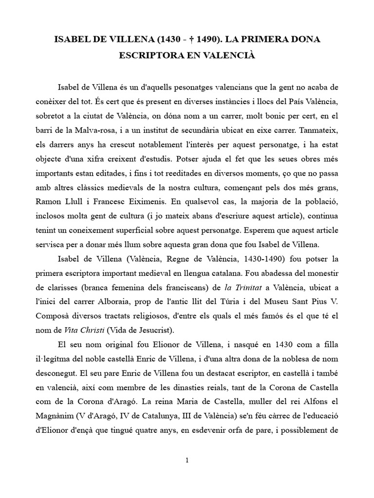 catalanoparlant. Alguns inclús han comparat Isabel de Villena amb altra escriptora