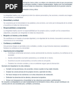 honestidad, la responsabilidad, el respeto y el compromiso con la ética. Es importante ser